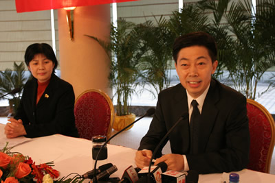 黃石市市長(zhǎng)肖旭明(右)在講話
