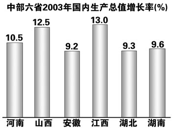 中部六省2003年生產(chǎn)總值增長(zhǎng)率圖表