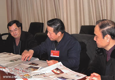“今年的‘兩會(huì)’報(bào)道有新意,有創(chuàng)意,圖文并茂,紙網(wǎng)互動(dòng),為今年的宣傳工作贏得了‘開(kāi)門紅’,打響了‘第一炮’!弊蛉障挛,省委常委、宣傳部部長(zhǎng)張昌爾到洪山賓館看望了“兩會(huì)”宣傳報(bào)道人員,對(duì)本報(bào)的“兩會(huì)”報(bào)道充分肯定。