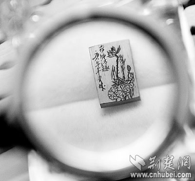 荊楚網(wǎng)(楚天都市報)(記者何君輝實習(xí)生周中華)寫意的中國山水畫,形態(tài)各異的花鳥蟲魚,憨態(tài)可掬的國寶大熊貓,風(fēng)格迥異的詩詞……承載它們的,竟然是如米粒大小的象牙片或動物骨片。昨日,記者在微雕藝人童洪斌家中,手持放大鏡,領(lǐng)略了他的微雕絕活。