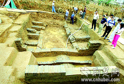 負(fù)責(zé)施工的武漢市文物考古研究所許主任說,經(jīng)鑒定,瓷片屬于宋代,可能是墓主的后人留下的。挖了半個(gè)月,至今仍未掘出古墓的整個(gè)墓緣?脊艑<曳Q,墓室規(guī)模龐大,結(jié)構(gòu)巧妙,墓主應(yīng)是南北朝時(shí)期很有身份地位的貴族。
