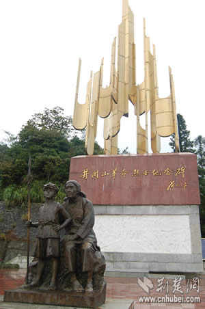 為紀(jì)念黃洋界保衛(wèi)戰(zhàn)的勝利,1965年修造了黃洋界紀(jì)念碑,碑上刻著朱德的題字“黃洋界保衛(wèi)戰(zhàn)勝利紀(jì)念碑”。在這里,我們能夠看到當(dāng)年紅軍的哨口工事、紅軍營房。在黃洋界哨口下,導(dǎo)游指著山下一段崎嶇小路說,毛澤東、朱德和井岡山軍民挑糧走的就是這條路,“朱德扁擔(dān)被藏起來”的故事就發(fā)生在這里。