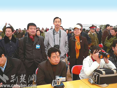 ●北京時(shí)間9時(shí)06分,神舟六號(hào)飛離酒泉衛(wèi)星發(fā)射中心觀禮臺(tái)人員視野。湖北日?qǐng)?bào)記者張小燕連線發(fā)射現(xiàn)場(chǎng)———嘉魚縣委宣傳部部長葛婷