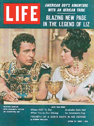 1961年,泰勒入主《埃及艷后》,20世紀(jì)?怂归_給她的報酬是當(dāng)時破紀(jì)錄的100萬美元。而她的羅曼史翻開了新的一頁——與扮演羅馬大將安東尼的理查德·伯頓陷入熱戀。