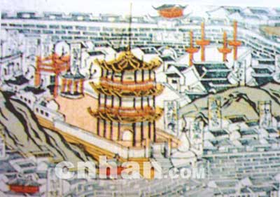 圖⑤ 《武漢三鎮(zhèn)浮雕圖》中之黃鶴樓
