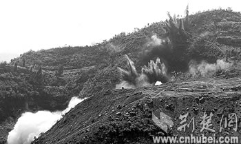 昨日上午10時(shí)30分,在一聲巨響中,宜昌市點(diǎn)軍區(qū)橋邊鎮(zhèn)黃家棚村的一座山頭劇烈地?fù)u晃了幾下,整座山土石松動,這是宜萬鐵路完成的一起大型山體爆破施工項(xiàng)目。
