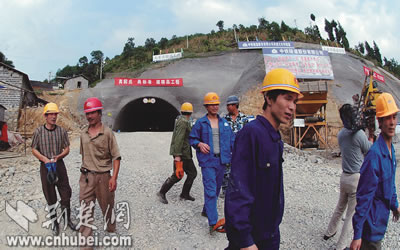 滬蓉西高速公路開工了,宜萬鐵路施工線路拉開了,恩施機(jī)場的改擴(kuò)建工程也啟動了,被群山環(huán)抱的恩施州,迎來了史無前例的交通大建設(shè),總投資達(dá)367億元。5年后,該州高速公路和鐵路將實現(xiàn)西進(jìn)東出,直達(dá)重慶、武漢和上海等地。圖為恩施市大水井隧道施工現(xiàn)場一角。荊楚網(wǎng)湖北日報記者楊平攝