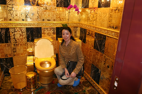 在2002年版的《吉尼斯世界紀(jì)錄》上有著這樣一條記錄:“用錢沖洗――世界上最昂貴的衛(wèi)生間由珠寶商林世榮制造,在他的中國香港商店售價240萬英鎊。它完全由金子和昂貴的珠寶制成。抽水馬桶、洗臉臺、刷子、衛(wèi)生紙盒、鏡框、墻上架設(shè)的吊燈、墻上的瓷磚和門全部都由24K黃金構(gòu)成! “這里有一點寫得不對,我的金廁所決不出售,我還要用它來專門注冊一個品牌,成為我們企業(yè)的象征!绷质罉s在接受記者采訪時,詳細地解釋了自己對“金廁所”的感情。 現(xiàn)任香港恒豐金業(yè)科技集團主席的林世榮說:“整個金廁所都是由我親自設(shè)計、監(jiān)督制造的,我甚至在工地呆過整整三天三夜沒有出來,可以說是傾注了極大的心血。很多人可能不了解我為什么會用這么多黃金來建造一個廁所,其實我不是為了炫耀,也不是喜歡奢侈浪費,我是在完成一個心愿。把土變成金了不起,把金變成土同樣了不起!