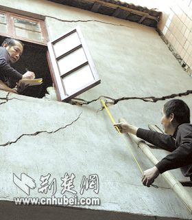 硚口長豐村的盧先生反映,自家一棟兩層樓私房是1993年建的,近兩年由于附近工地打樁,年久失修,房屋墻面已出現(xiàn)了裂縫。經(jīng)過前日的地震,二樓墻面的裂縫比以前更厲害了。