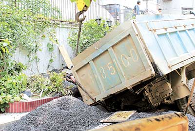 荊楚網(wǎng)(楚天都市報) (記者 劉俊華 實習(xí)生 蘆何秋 記者 宋枕濤) 昨日下午2時許,漢口球場新村一校園刷黑施工現(xiàn)場,一輛滿載瀝青的貨車軋塌路基發(fā)生側(cè)歪,車廂內(nèi)瀝青傾瀉而下,埋住了一位指揮倒車的農(nóng)民工。幾分鐘后,這位工人被工友們扒出來,因瀝青溫度太高,他只揮動了兩下手,就再也沒能醒來……