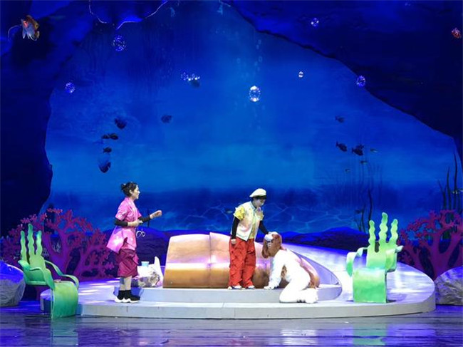 《浮出水面》講述了未來人類因一次地震而沉入海底生活,小男孩“歡歡”一家在未來世界認(rèn)識(shí)到環(huán)境污染的嚴(yán)重,在中華鱘“奔奔”的指引下浮出水面,最后重回陸地建設(shè)家園的故事,劇情將大量音樂舞蹈與科學(xué)知識(shí)結(jié)合,涵蓋垃圾分類、人體急救、阿基米德原理、火箭噴射等多種科學(xué)知識(shí)。整場(chǎng)演出亮點(diǎn)紛呈。