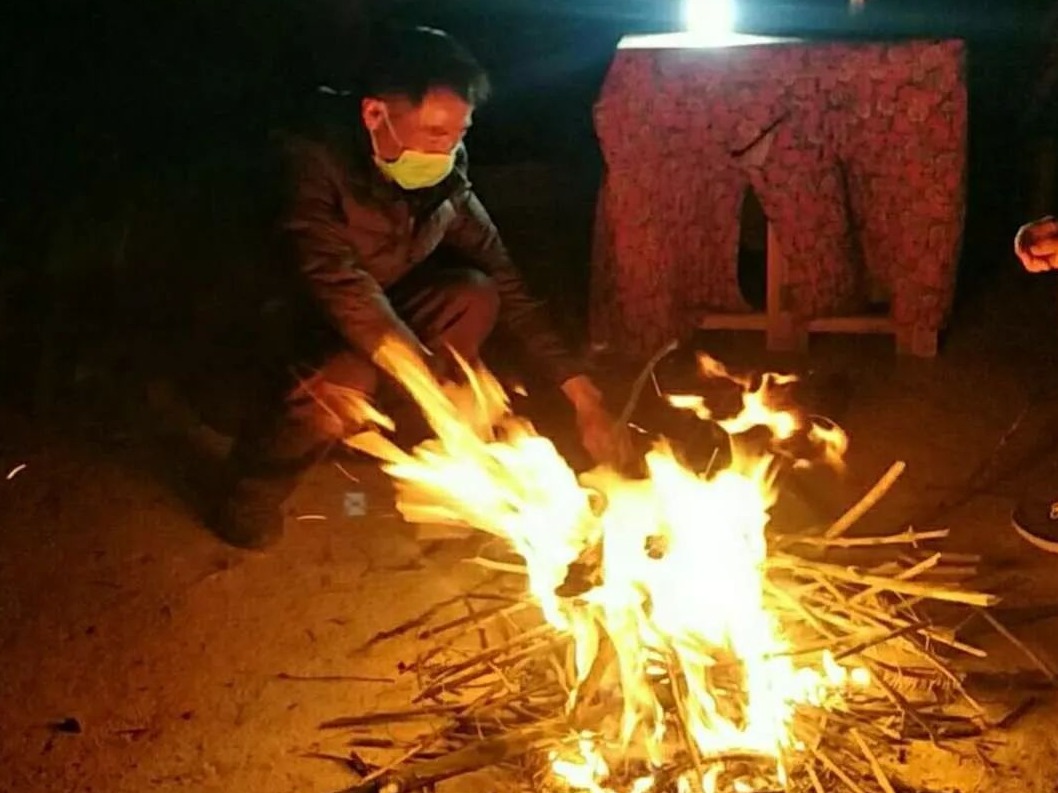 老百姓不約而同的從自家搬來(lái)柴火、鐵鍋、角架為各鄉(xiāng)界、村界的守護(hù)者點(diǎn)上柴火。這些夾雜著濕氣的柴火剛點(diǎn)燃的時(shí)候冒起一股股濃濃的黑煙,像那沉甸甸的烏云,在帳篷里時(shí)起時(shí)落,到處亂竄,嗆人眼鼻。在這里錯(cuò)過(guò)了除夕,跨過(guò)了春節(jié),即將越過(guò)元宵,自臘月二十八日起至今,所有干部只身前來(lái),在沒(méi)有防護(hù)服的保護(hù)和沒(méi)有專業(yè)醫(yī)學(xué)知識(shí)的情況下,僅憑著有限的基層工作經(jīng)驗(yàn)和一根三寸不爛之舌,苦口婆心的輾轉(zhuǎn)在全鄉(xiāng)的每個(gè)村落:人員摸排、驅(qū)散集會(huì)、勸眾禁賭、返鄉(xiāng)留觀、調(diào)配物資、封鎖消殺、卡點(diǎn)值守等工作。
