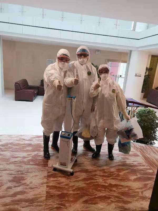 “我穿著尿不濕在里面,這樣可以撐的時間長點兒,現(xiàn)在物資緊張,不能浪費防護服?!毙苄∮⑨t(yī)生說,她在工行赤壁培訓分校集中隔離醫(yī)學觀察點執(zhí)行醫(yī)療任務。