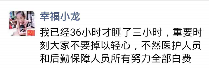 年邁母親患病在家,只能托付十三歲的孩子陪伴照顧。自抽調(diào)隔離七區(qū)工作后,市人民醫(yī)院醫(yī)生陳衛(wèi)東已半個多月不曾回家。他在朋友圈里寫道:“我們不能回家,是為了讓更多的人能早日平安回家”。