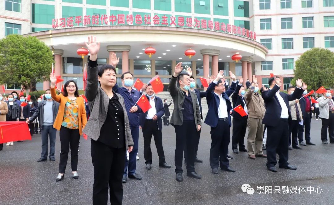 送別儀式上,杭鶯、鄭俊華等縣領導為全體云南醫(yī)療隊隊員獻上鮮花。隨后,杭鶯向云南醫(yī)療隊隊長董昭興頒授印有“援崇抗疫彰大愛 彩云之南皆英雄”錦旗并合影留念。