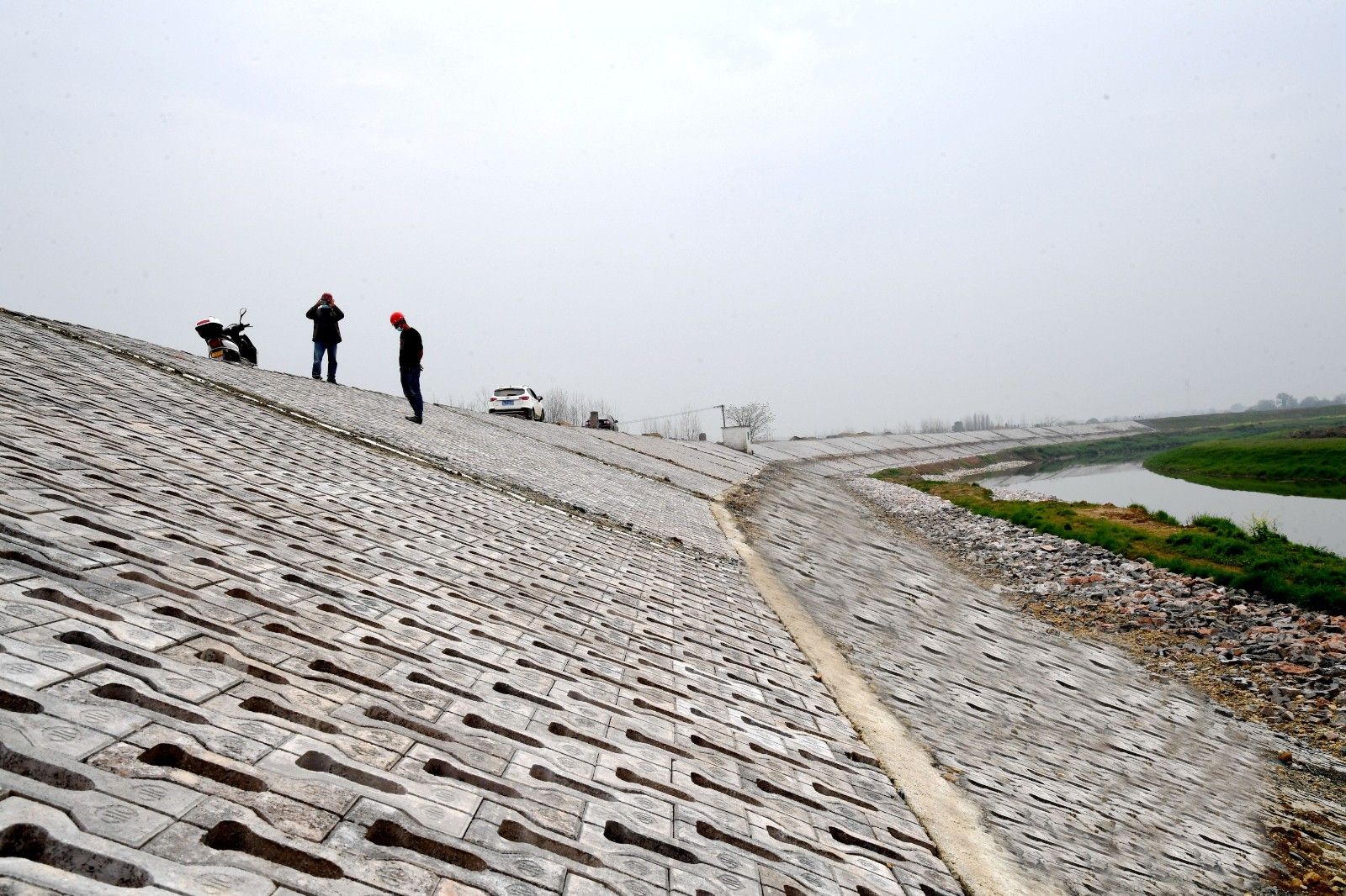3月24日,在黃蓋湖防洪治理工程(湖北部分)施工現(xiàn)場(chǎng),修筑一新的堤岸像一道堅(jiān)固的長(zhǎng)城。