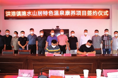 8日下午,通山縣洪港鎮(zhèn)隱水山居特色溫泉項目簽約儀式在洪港鎮(zhèn)政府舉行。