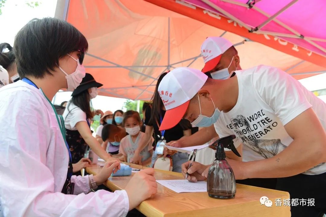 上午9點(diǎn),石門村渡槽下的廣場上已是一番熱鬧景象。入口處的登記臺(tái)擺著“防疫三寶 ”——體溫檢測儀、消毒酒精、口罩,所有人員通過健康測溫,登記完方可入場。