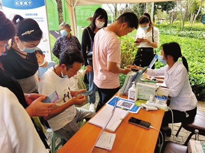 與此同時,在官橋八組田野鄉(xiāng)村公園開心農(nóng)場景區(qū)門前,筆者看到檢票處排起了長隊,游客們正有序地核銷預(yù)約二維碼、測溫、登記完后陸續(xù)進入景區(qū)。景區(qū)內(nèi)隨處可見拍照合影、嬉戲玩耍的身影,洋溢著一派歡聲笑語的熱鬧景象。