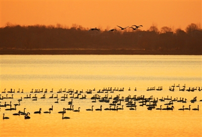 近年來(lái),隨著退垸還湖和禁捕政策的實(shí)施,濕地生態(tài)環(huán)境持續(xù)改善,西涼湖水質(zhì)上升為二類后,為天鵝越冬創(chuàng)造了良好的棲息之地。