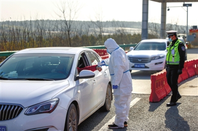 1月28日,2021年春運開啟。29日上午,在咸安區(qū)張公高速收費站路口,紅色水碼擺放成指引車道,幾個全副武裝的工作人員正對過往車輛逐一進行排查。遇到外地或中高風險地區(qū)來車就指引其到帳篷內測體溫、查健康碼等,并詳細登記對方信息。