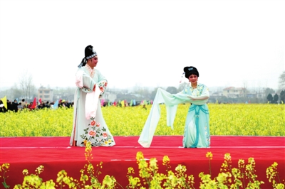 精彩的文藝演出、極具地方風(fēng)情的民俗表演和國(guó)家非物質(zhì)文化遺產(chǎn)提琴戲演唱,與花海交相輝映,為大家?guī)?lái)了視聽(tīng)盛宴。開(kāi)幕后,游客開(kāi)始游玩賞景,大家邊感嘆七彩油菜花的美,邊呼朋引伴拍照留念,人花相映襯,美不勝收。除了賞花,大家還紛紛品嘗特色美食,購(gòu)買(mǎi)當(dāng)?shù)靥厣r(nóng)產(chǎn)品。