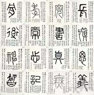 在創(chuàng)作中,陳履生用接近現(xiàn)代繪畫的方式,將字的主體以篆書寫在中心位置,周圍以行書題跋書寫注釋、個(gè)人感悟等相關(guān)內(nèi)容,強(qiáng)化對(duì)這個(gè)字的認(rèn)識(shí)過程,讓人有更深刻的理解。如開篇第二字“義”字的題跋,除了引用古籍中對(duì)義字的解讀,還加入了一句“時(shí)在國(guó)家多事之時(shí),義士善舉皆多”的感悟,與當(dāng)時(shí)“大疫當(dāng)前有大義”的情境十分貼合。