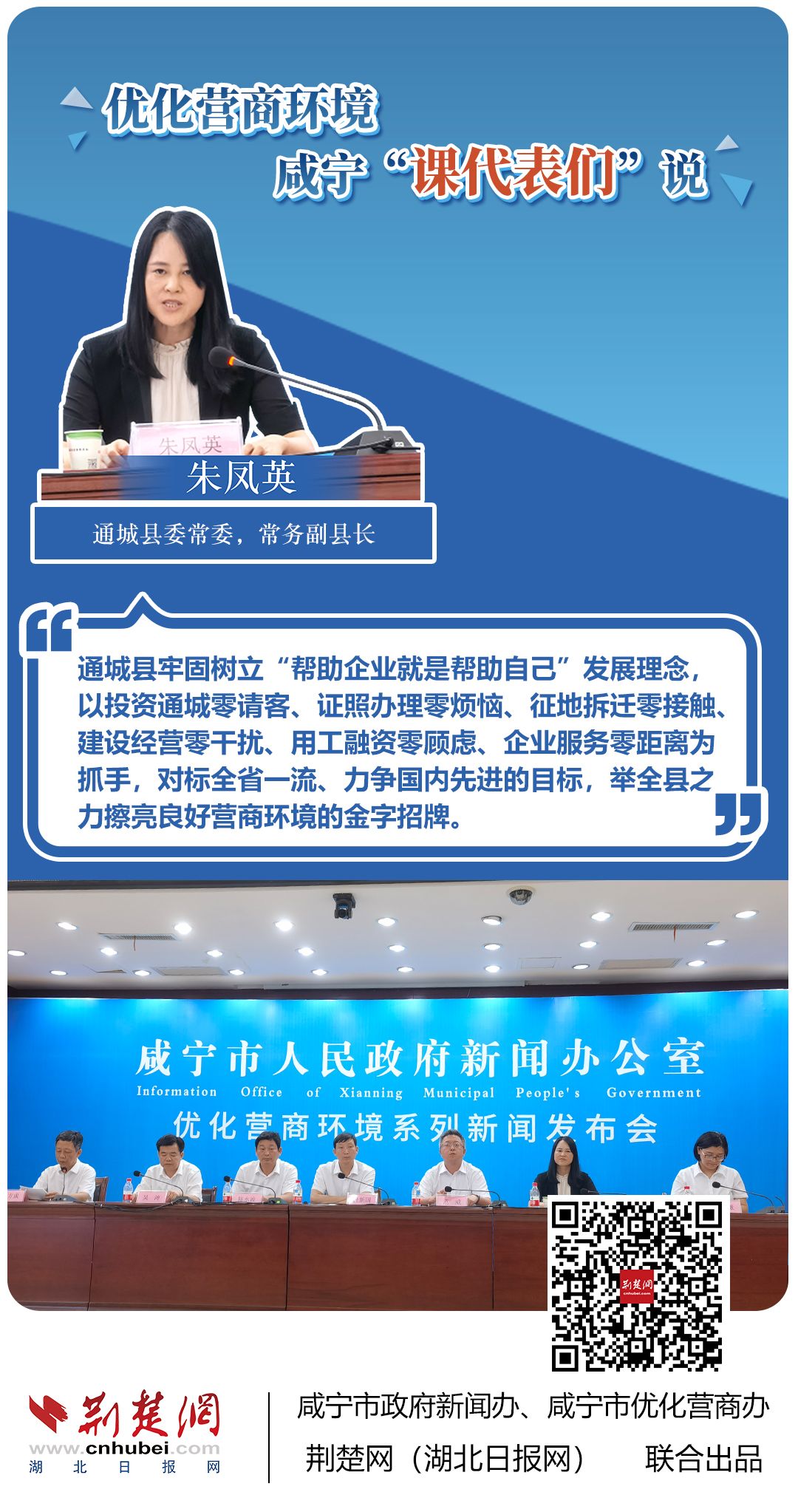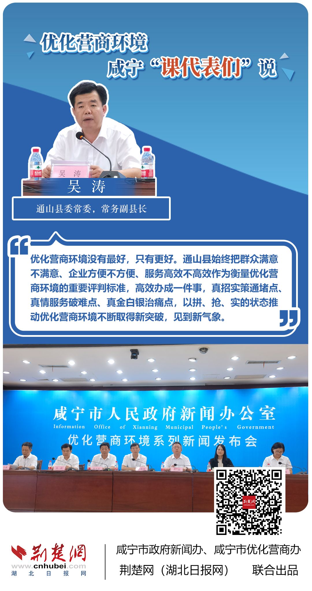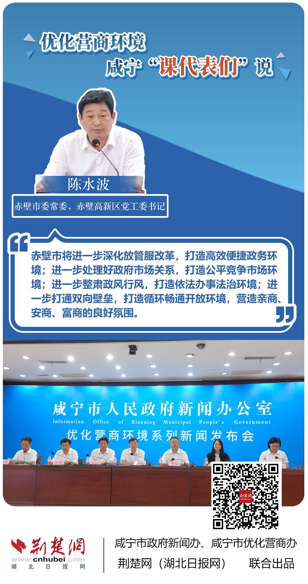 荊楚網(wǎng)(湖北日?qǐng)?bào)網(wǎng))訊(記者 田城 通訊員 孫方成 張永紅)跨省通辦、“零干擾環(huán)境”、最簡流程優(yōu)服務(wù)、深化“放管服”改革、整肅行風(fēng)政風(fēng)……7月20日下午,咸寧市召開優(yōu)化營商環(huán)境新聞發(fā)布會(huì)。會(huì)上,咸安區(qū)、嘉魚縣、赤壁市、通城縣、崇陽縣、通山縣6個(gè)縣市區(qū)優(yōu)化營商環(huán)境發(fā)言人亮相,全面介紹當(dāng)?shù)貎?yōu)化營商環(huán)境有關(guān)情況,持續(xù)推進(jìn)咸寧市營商環(huán)境朝著更優(yōu)、更好方向前進(jìn)。