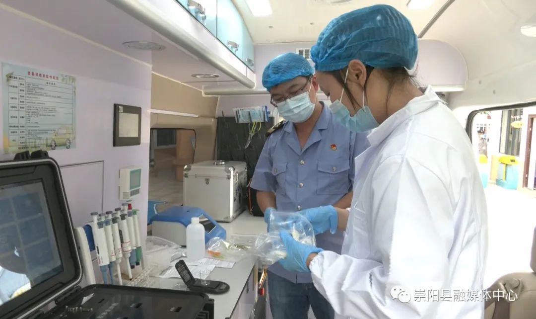在崇陽(yáng)縣第二幼兒園,檢測(cè)人員正在為采樣做準(zhǔn)備,在將專業(yè)儀器、設(shè)備調(diào)試好后,對(duì)校園食堂里已經(jīng)過(guò)消毒的餐具進(jìn)行拭子采樣,隨后將采樣的拭子放入檢測(cè)儀器中。