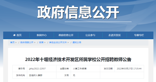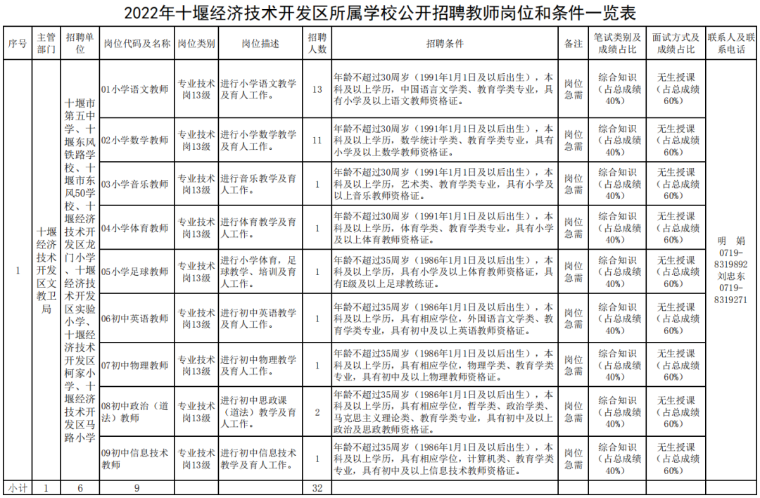 近日,十堰經(jīng)濟(jì)技術(shù)開(kāi)發(fā)區(qū)組織人事部發(fā)布公告十堰經(jīng)濟(jì)技術(shù)開(kāi)發(fā)區(qū)所屬學(xué)校擬面向社會(huì)公開(kāi)招聘教師32名。