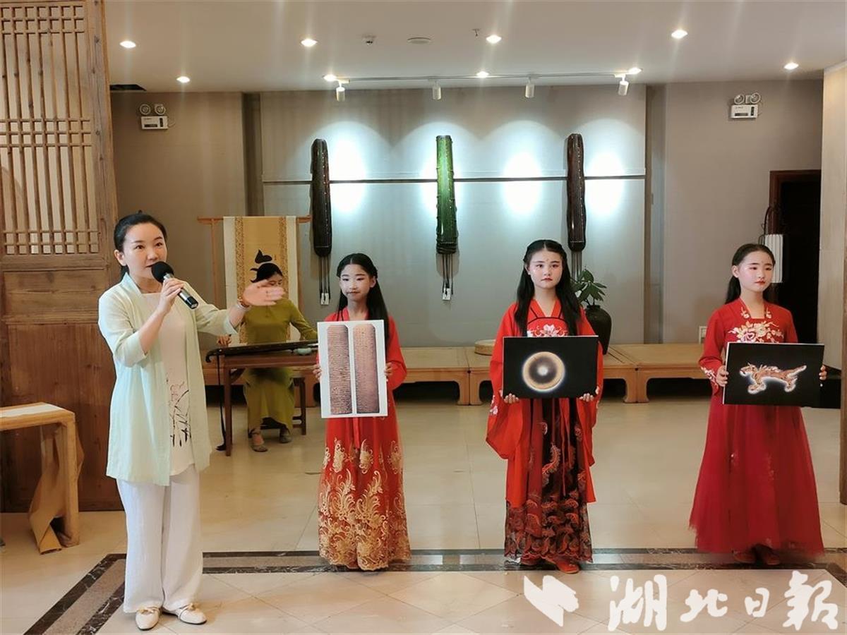 隨后,文物故事《金龍、玉璧、山簡(jiǎn)》、武當(dāng)山宮觀道樂(lè)《春到御花園》、養(yǎng)生文創(chuàng)《武當(dāng)千年艾灸》、健康舞《本草綱目》、文化藝術(shù)《書畫武當(dāng)》、琴韻太極《精忠詞》、文化分享《老子養(yǎng)生》《千秋國(guó)飲武當(dāng)山茶》等節(jié)目一一精彩呈現(xiàn),充分展示了武當(dāng)山濃厚的文化底蘊(yùn)。一個(gè)多小時(shí)的演出,為觀眾們呈現(xiàn)了一場(chǎng)豐盛的文化大餐。