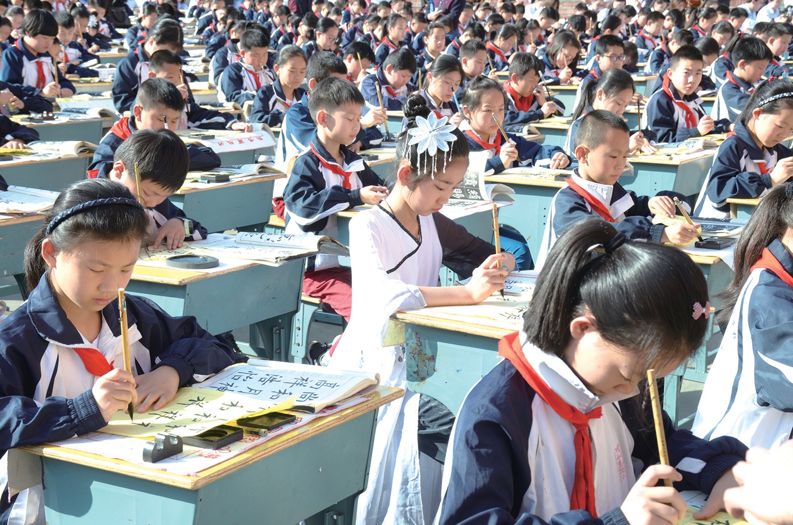 書(shū)寫(xiě)是一個(gè)循序漸進(jìn)的過(guò)程,在孩子小學(xué)階段有意識(shí)地培養(yǎng),讓孩子養(yǎng)成良好的書(shū)寫(xiě)習(xí)慣,其將會(huì)受益一生?!拔覀儗W(xué)校每天堅(jiān)持中午練20分鐘書(shū)法,孩子們學(xué)習(xí)書(shū)法的第一個(gè)內(nèi)容,就是坐姿訓(xùn)練?!睎|風(fēng)52小學(xué)校長(zhǎng)龔明說(shuō)。