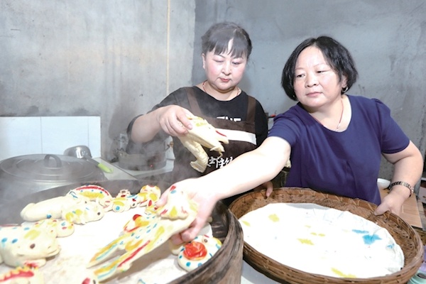 在陳西霞的帶動下,姐姐陳緒榮和陳西霞15歲的女兒也一同跟她學習做花饃?!拔蚁嘈培y西非遺能夠越做越好?!标愇飨急硎荆鎸衲昙磳⒌絹淼钠呦?,她說,將創(chuàng)新做出玫瑰花狀的花饃,用火龍果汁上色,最終呈現(xiàn)出紅玫瑰狀的花饃,符合七夕節(jié)日氛圍。