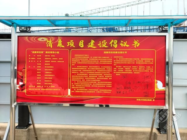 赤壁中試谷·智能無人系統(tǒng)測(cè)試基地赤壁市水建集團(tuán)項(xiàng)目部前的清廉項(xiàng)目建設(shè)倡議書的簽名板上,密密麻麻地簽滿了名字。一個(gè)簽名就是一份承諾,一個(gè)簽名就是一份責(zé)任,一個(gè)簽名就是水建集團(tuán)建設(shè)清廉國(guó)企的堅(jiān)實(shí)基礎(chǔ)。