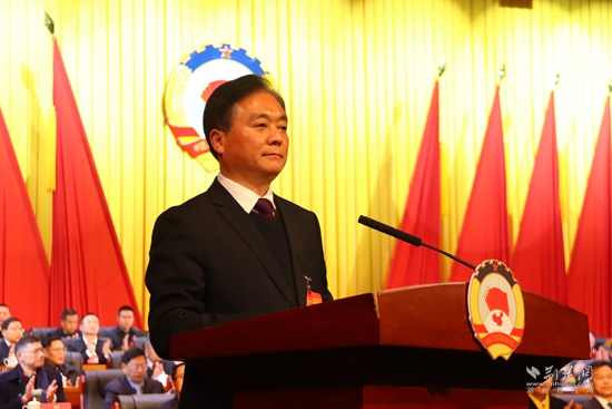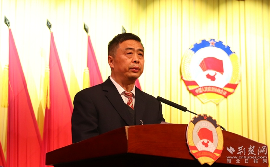 咸安區(qū)政協(xié)主席鎮(zhèn)權(quán)作工作報(bào)告。黃錚 攝