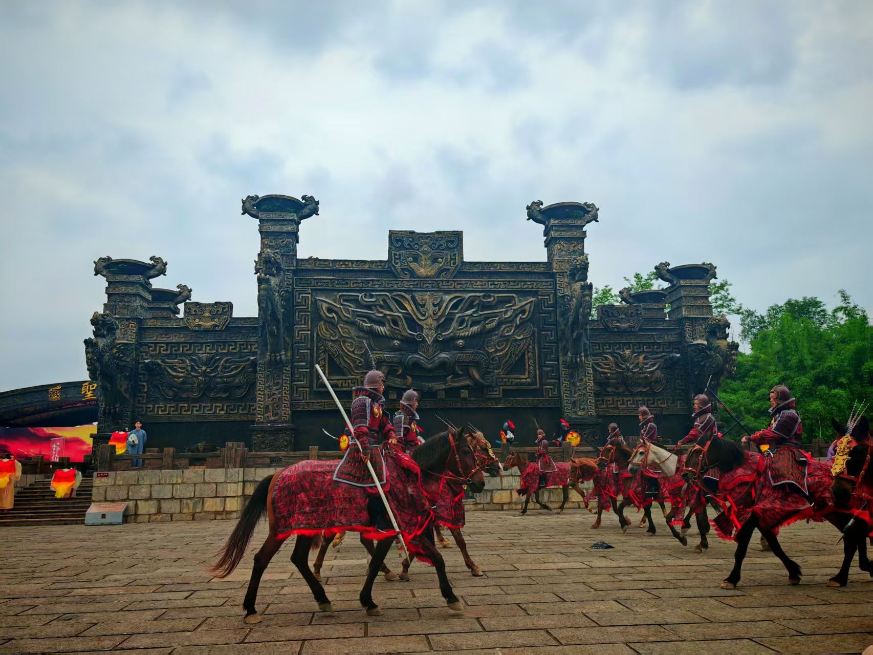 “各位看官,三國(guó)演義第四十四回到第五十回說(shuō)道,曹操不費(fèi)吹灰之力擁有了荊襄水軍,號(hào)稱80萬(wàn)大軍向長(zhǎng)江推進(jìn)……”5月1日上午9時(shí),隨著“說(shuō)書(shū)人”一聲高喊,三國(guó)赤壁古戰(zhàn)場(chǎng)城門(mén)緩緩打開(kāi),10名戰(zhàn)士策馬躍出,戰(zhàn)鼓響起,劉備、關(guān)羽、張飛等三國(guó)人物也陸續(xù)出場(chǎng),現(xiàn)場(chǎng)掌聲不斷。沉浸式場(chǎng)景將數(shù)百名圍觀游客穿越回1800多年前的三國(guó)時(shí)空。