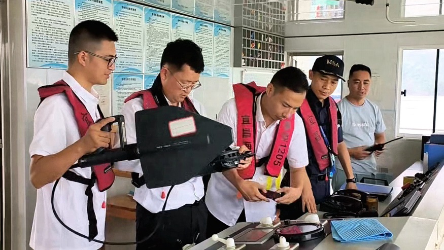 此外,無線電技術(shù)人員攜帶專業(yè)便攜移動(dòng)監(jiān)測(cè)設(shè)備,對(duì)臨江坪待閘錨地區(qū)域開展水上移動(dòng)電磁環(huán)境監(jiān)測(cè);檢查船舶甚高頻電臺(tái)(VHF)等無線電設(shè)備,核查設(shè)備是否取得型號(hào)核準(zhǔn),檢測(cè)設(shè)備發(fā)射的無線電頻率、帶寬等技術(shù)參數(shù),排查通信安全隱患。