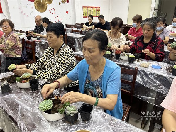 多肉微景觀制作環(huán)節(jié),在專業(yè)園藝師的指導下,居民們專注搭配多肉植株、營養(yǎng)土與彩色鋪面石,巧妙裝點小花盆與玉兔玩偶,不時交流種植心得,詢問養(yǎng)護技巧。不一會兒,一個個融合綠意與中秋意象的微景觀陸續(xù)完成,翠綠植株與靈動玉兔相映成趣,洋溢著溫馨與創(chuàng)意。