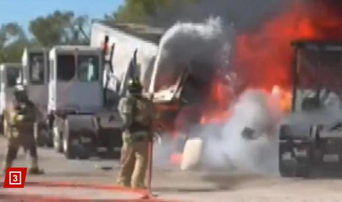 中新網(wǎng)10月13日電 綜合美媒報道,當?shù)貢r間12日,美國得克薩斯州沃斯堡市,一架小型飛機在希克斯機場附近墜毀,造成地面多輛半掛卡車起火,另有2人死亡。