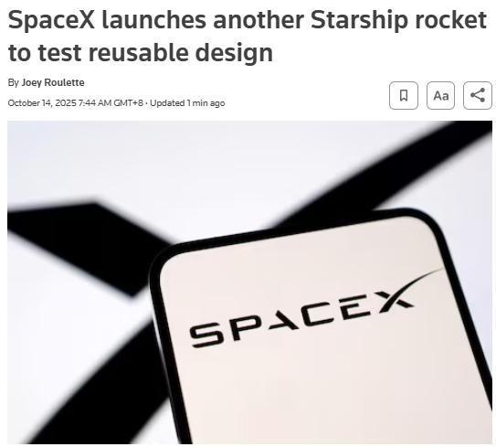中新網(wǎng)10月14日電 據(jù)路透社報道,當?shù)貢r間13日,美國太空探索技術(shù)公司(SpaceX)新一代重型運載火箭“星艦”從得克薩斯州發(fā)射升空,實施第11次試飛。