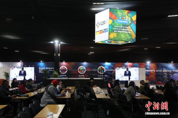 當(dāng)?shù)貢r(shí)間11月17日,南非在約翰內(nèi)斯堡展覽中心(NASREC)召開(kāi)媒體簡(jiǎn)報(bào)會(huì),介紹二十國(guó)集團(tuán)(G20)領(lǐng)導(dǎo)人峰會(huì)籌備進(jìn)展?!≈行律缬浾?孫翔 攝