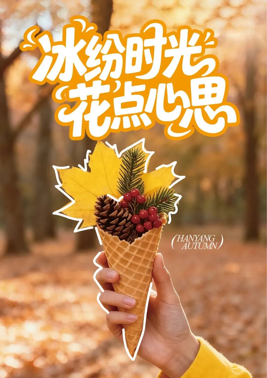 花點(diǎn)心思,把精選的秋葉卷成甜筒,你就得到了一份獨(dú)一無二的、不會融化的秋天。