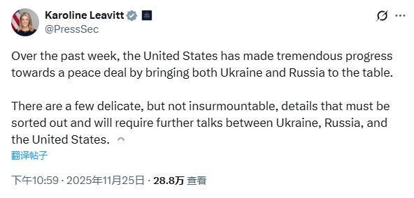 △美國(guó)白宮新聞秘書(shū)萊維特25日發(fā)布聲明稱(chēng):“還有一些棘手但并非不可克服的關(guān)鍵細(xì)節(jié)亟待解決“。