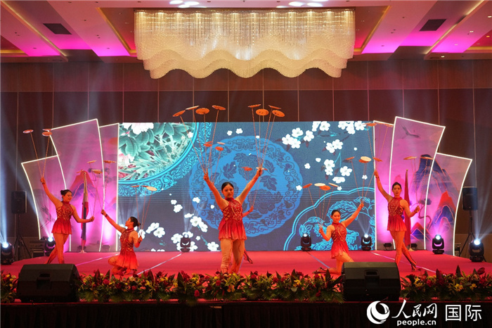 德州的藝術(shù)家們?yōu)橛^眾獻(xiàn)上精彩的雜技和歌舞表演。人民網(wǎng)記者 樊帆攝