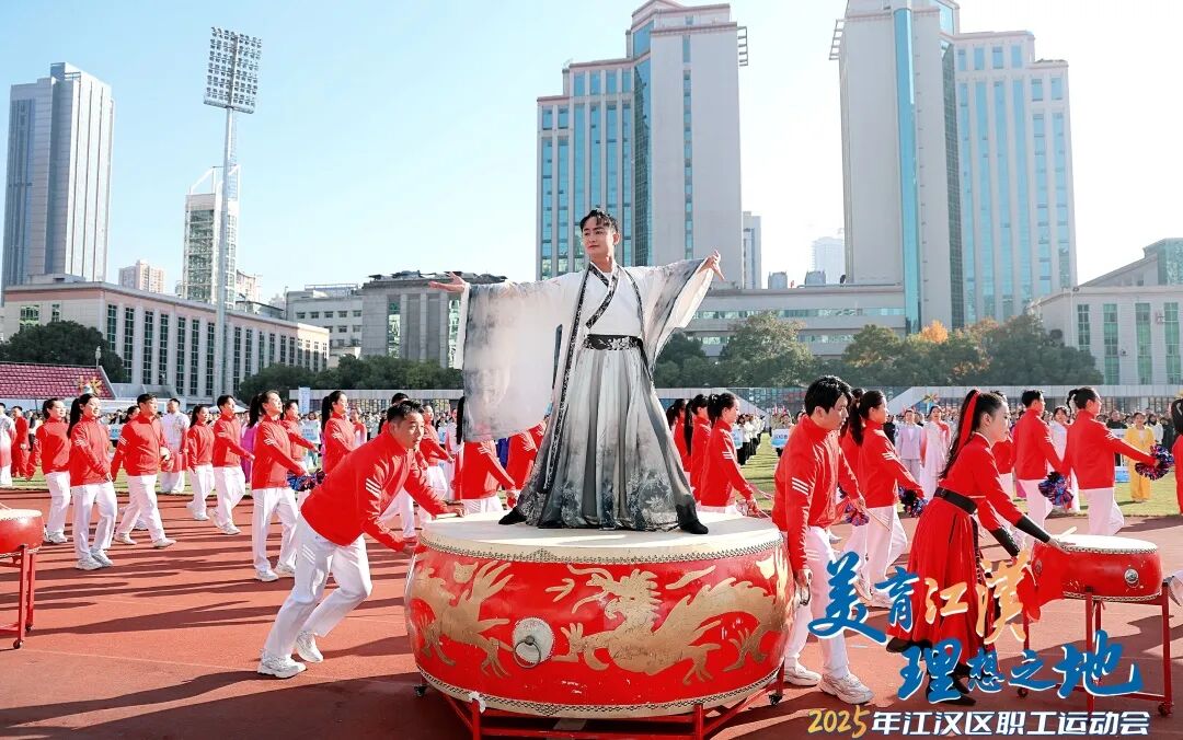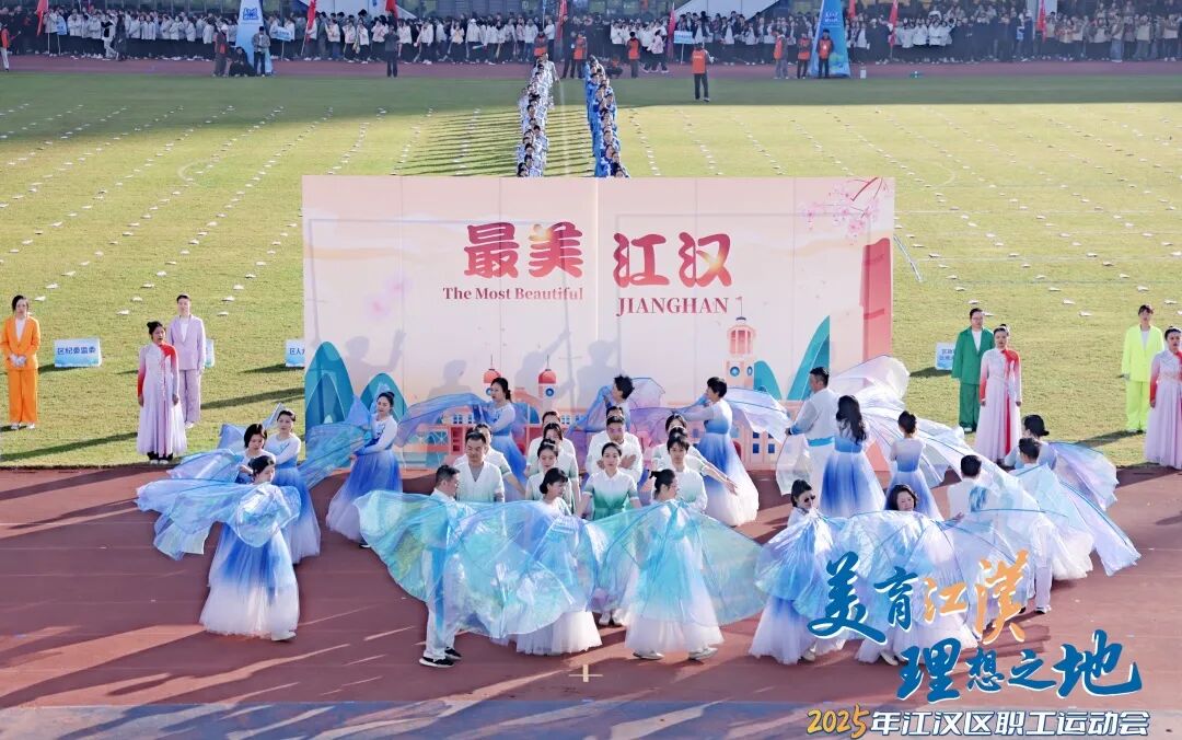 文藝演出環(huán)節(jié)同樣精彩紛呈。開場舞《美麗中國》以熱情舞步禮贊祖國;體育舞蹈《躍動未來》上演力量與美的碰撞;《活力江漢》歌曲串燒中,小歌手彭彥凱與武漢天使童聲合唱團帶來動人演唱,職工歌手聯(lián)袂獻唱《江漢四季》《相親相愛》,引發(fā)全場共鳴;千人工間操展演氣勢恢宏,全場配合呈現(xiàn)“I?JH”巨型畫面,將開幕式推向高潮。