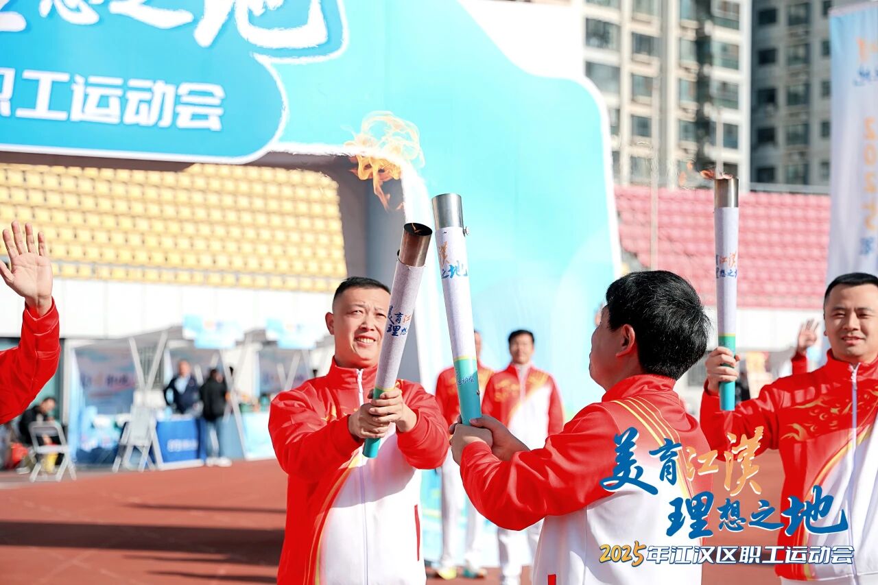現(xiàn)場,“新興之火”“數(shù)智之火”“金融之火”“樞紐之火”“人文之火”五棒火炬依次點(diǎn)亮,張?jiān)?、付俊、邵青、張寶劍、孟廣松等15位勞模代表接力傳遞。燃燒的火焰,照耀著江漢區(qū)在科技創(chuàng)新、數(shù)字化轉(zhuǎn)型、金融強(qiáng)區(qū)、商貿(mào)物流、文商體旅融合等發(fā)展領(lǐng)域堅(jiān)定向前。當(dāng)所有火炬手共同點(diǎn)燃主圣火盆,彩球騰空,全場沸騰,運(yùn)動(dòng)會(huì)正式開幕。