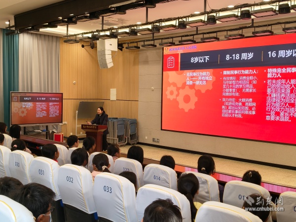 活動(dòng)中,武昌區(qū)人民法院白沙洲法庭余意法官以《未成年人民事法律行為效力》為題,用“未成年人網(wǎng)購貴重物品是否有效”等案例,按年齡分層解析法律責(zé)任邊界,讓學(xué)生快速厘清不同階段的民事行為效力,直觀感受憲法及民事法律對青少年權(quán)益的保護(hù)。
