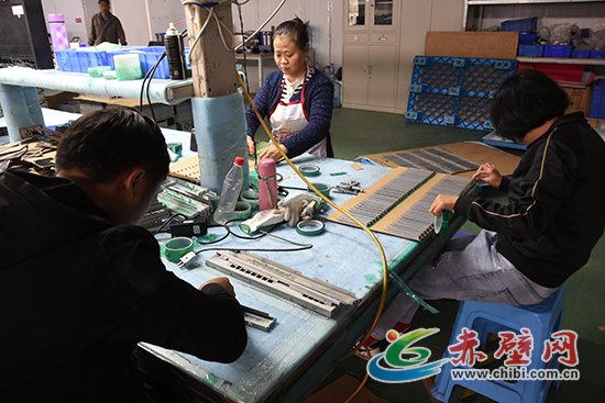 (記者 聶愛陽)10月27日,赤壁高新區(qū)藍炬興業(yè)(赤壁)科技有限公司車間內(nèi),工人們正忙著往機盒上粘警示隔離膠。