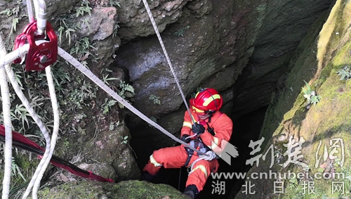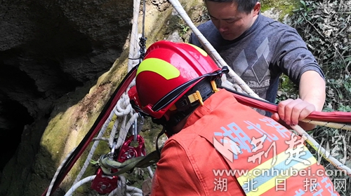 因消防車無法抵達(dá),消防員帶上救援工具,徒步半個多小時迅速趕赴事發(fā)現(xiàn)場開展救援。到達(dá)現(xiàn)場后,發(fā)現(xiàn)一名三十多歲男性在一個10多米的深洞內(nèi)呼救。經(jīng)與被困者和現(xiàn)場群眾溝通了解,此洞名為藏龍洞,是一個未經(jīng)商業(yè)開發(fā)的深洞,有著悠久的歷史傳說,引來無數(shù)探險者,這名男子也是因為好奇,下洞后體力不支無法再攀爬出洞被困洞底。中隊指揮員根據(jù)現(xiàn)場情況,立即利用救援繩索做好安全支點(diǎn),消防員何聰點(diǎn)降至洞底查看被困者情況,所幸洞內(nèi)空氣流暢,被困者無二次受傷的危險,消防員利用隨身攜帶的全身吊帶將被困者固定好后,經(jīng)洞外消防員齊力,最終經(jīng)過20多分鐘的救援,被困人員被成功營救出山洞。