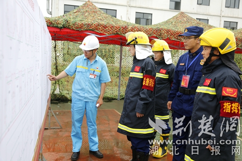 圖為石油化工單位負責人講解演練場所現(xiàn)場。通訊員朱燕林攝